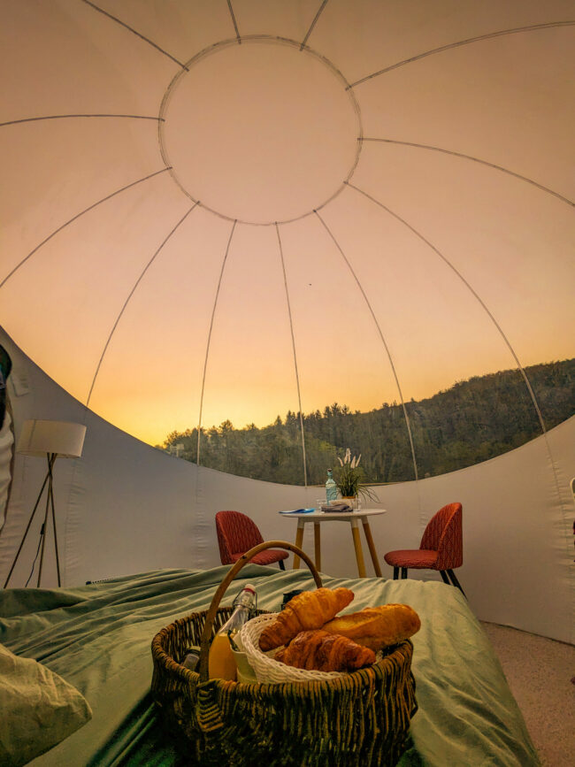 Réveil aux premières lueurs du jour, avec le chant des oiseaux… Et en prime, un petit déjeuner au lit ! Que rêver de mieux ? Réouverture le 6 mai 2024… Réservations ouvertes